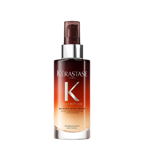 8H Magic Night Serum de Kérastase es un serum de alta nutrición para el sueño reparador para cabellos secos. Este tratamiento capilar de noche contiene polímeros anti-sequedad para un cuidado inmediato con un acabado ligero y no graso. Además aporta una dosis de nutrientes esenciales que potencian la la capacidad de la fórmula para nutrir y reforzar el cabello. El 8H Magic Night Serum funciona durante 8 horas para revitalizar y regenerar el cabello seco y protege de la fricción de la almohada. +98 % cabello más fuerte* Botella fabricada con un 20% de vidrio reciclado. *Resultados de pruebas instrumentales después de la aplicación de 8H Magic Night Serum